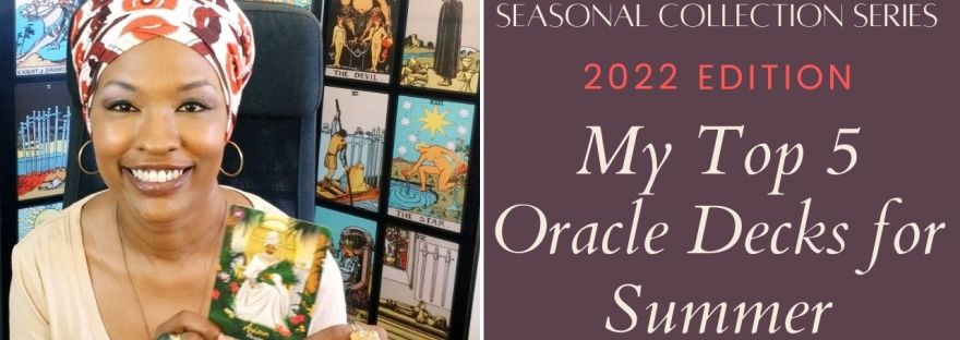 A YouTube premiere video happening Thursday, June 9, 2022, at 2:30 PM, Eastern Time. Summer time is almost here! Check out my top 5 diverse indie and mass market oracle decks I plan to use this summer.