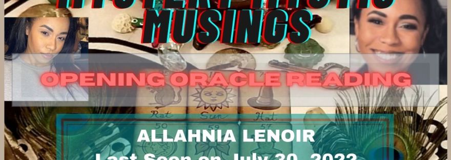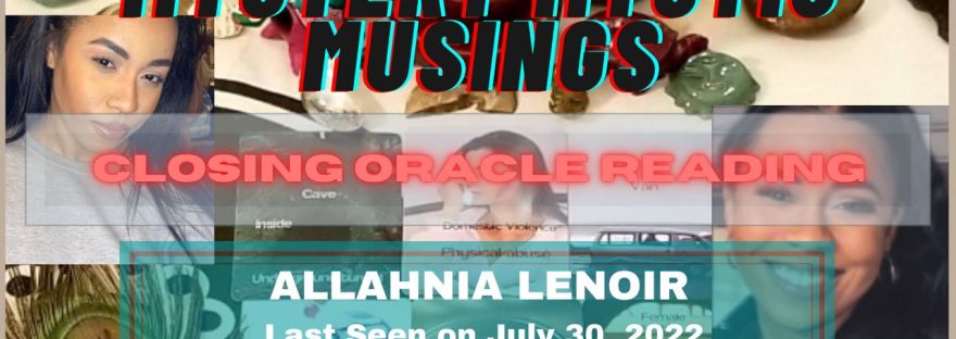 Allahnia Lenoir, age 24, has been missing since July 30, 2022. I have conducted readings and broke them down into four parts. Part 1 was published on August 19, 2022. Parts 2 and 3 – the detailed Tarot and Oracle reading premieres on August 25, 2022. Part 4 – the closing Oracle will premiere on Monday, August 29, 2022, at 11:30 AM, Eastern Time.