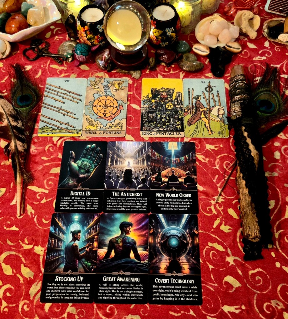 The 6 of Wands is about experiencing a short-lived, hollow victory that doesn’t move the powers that be any farther than when they started this mess. We will learn more about what this is really all about in the next 8 weeks and why this past weekend was the start of the war. The workings of this plan started in late autumn 2025 and are being executed now as a rushed attempt at garnering support in political matters. Fallout from attacking Iran is on the horizon. The Wheel of Fortune is about a change that’s coming and karmic retribution. If someone had control before, the Wheel of Fortune signals a turn of events of loss of control.