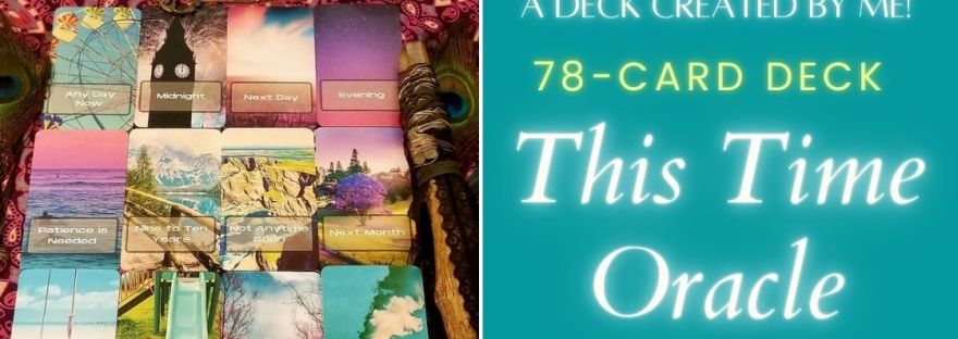 I created a 78 card deck titled This Time Oracle. This deck is all about elements of time, which is something that is helpful in certain types of readings. I will be premiering a video on June 21, 2023 of a full flip-through of the deck and on Thursday, will share with you how I use this deck in a video all about the tools I use for discussing time in my readings.