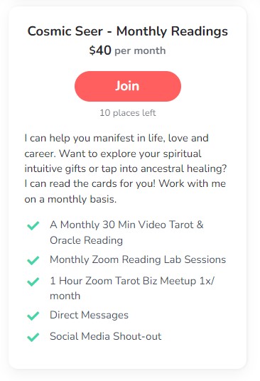 Abundant Life Tarot Academy Level $5.99/month, which gives you access to all of the Reading Lab replays, including the Learn the Cups workshop.