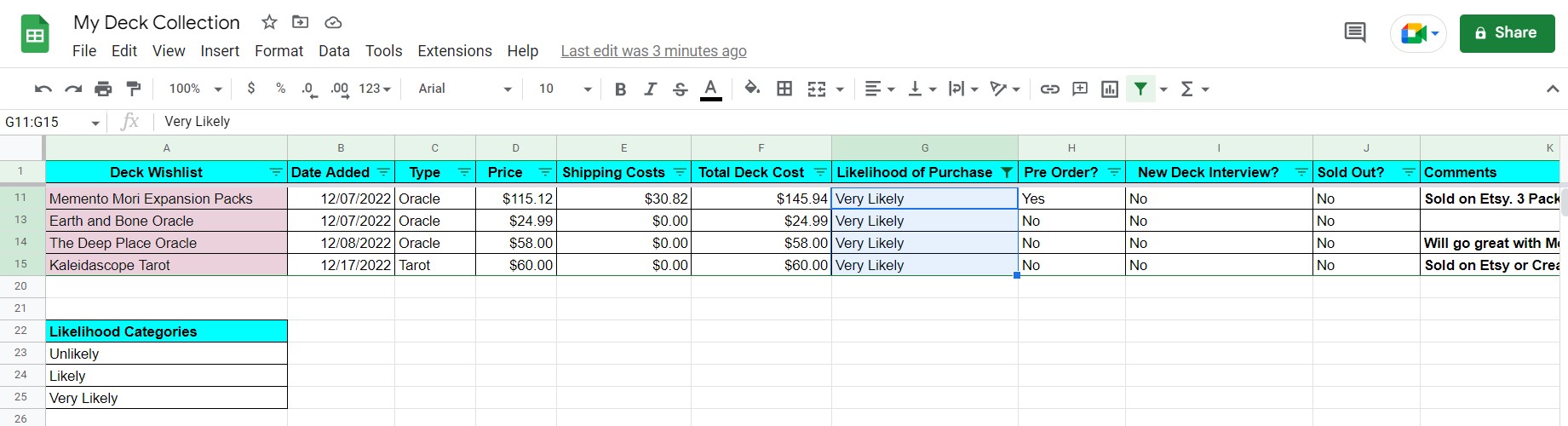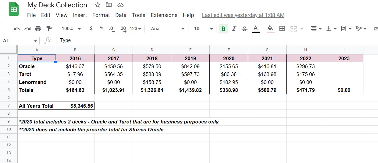 Many years ago, I created two spreads to help me periodically check on my deck-collecting habits. I sense that it is time for me to see if something has changed. We will do these spreads together, so have your favorite decks ready!