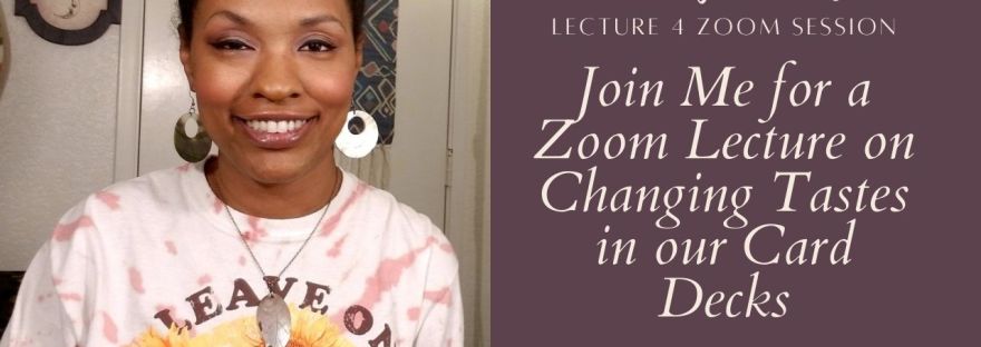 Over time, tastes change when we collect decks…has yours? Let’s talk about it! I am excited to announce the next Zoom Lecture for the free course, Choosing Your Next Deck, Curating Your Collection. I will be hosting a live lecture, where new and existing students can discuss and ask questions.