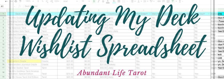 I now have the task of updating my Tarot and Oracle tracking spreadsheets to reflect what decks are still in my collection, which ones have been sold/given away, and which ones I plan to send to my new home. I will also identify more decks to sell and giveaway, too, as I plan to cut my deck collection by up to 50%. I have my work cut out for this project, but it is a worthwhile endeavor and I promise myself that I will see to it that all of my decks make their way to their proper home – whether that’s to me or to a new person.