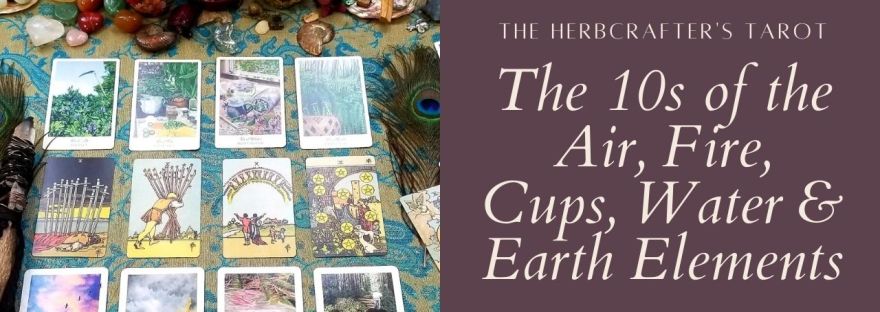 ALT’s Tarot Study Group’s deck we’re exploring is The Herbcrafter’s Tarot. In this video, we take a look at the 10s in all four elements – air, fire, water, and earth.